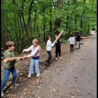 Picknick vor und im Wald, Baumstämme im Team tragen, wirklich sehr nasse Schwämme weitergeben - so nass wie Moos im Wald, das ein toller Wasserspeicher ist, Weitsprung oder Bauen eines Dachstuhls, Sammeln verschiedener Blätter, Früchte und anderer Dinge, Zählen der blauen Spechte (69), die unser Wegweiser durch den Wald waren... Wir hatten einen spannenden Tag!